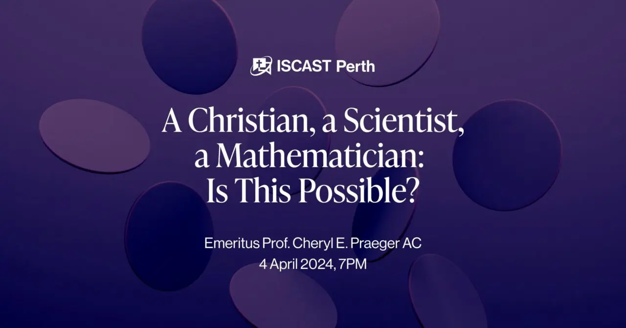 Is God a mathematician? In this ISCAST Perth talk, internationally acclaimed mathematician Emeritus Prof. Cheryl Praeger AC will share with us her journey in mathematics and faith, including insights around how significant progress in abstract mathematics comes about, and how mathematics may relate to God and his creation.