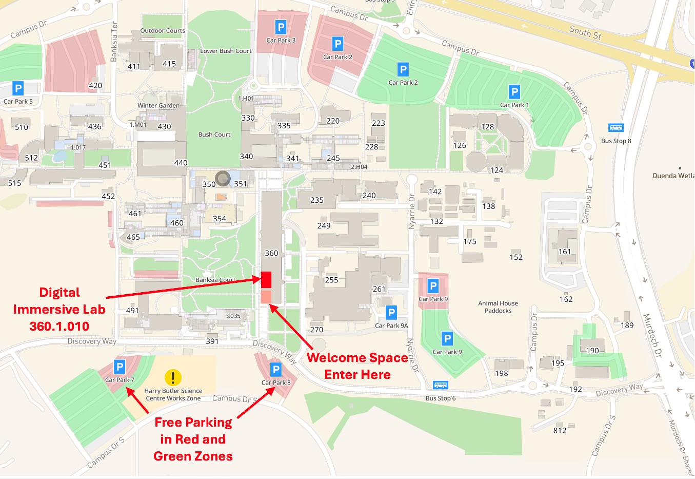 - Where: Digital Immersive Lab, Boola Katitjin Building 360 (ground floor), Discovery Way, Murdoch University, Perth WA